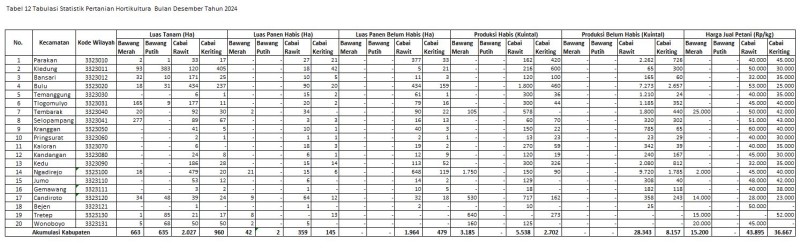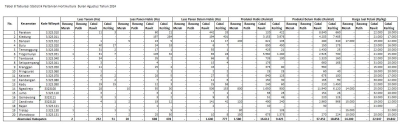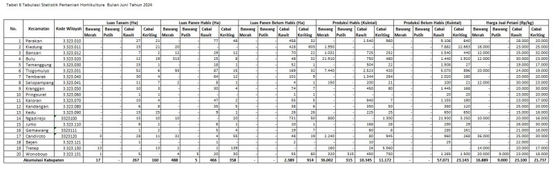 Informasi Kategori: Statistik Pertanian Selasa, 11/03/2025 15:18 2 Tabulasi Statistik Hortikultura Bulan Februari 2025 Selengkapnya Kategori: Statistik Pertanian Selasa, 11/02/2025 15:16 3 Tabulasi Data Statistik Hortikultura Bulan Januari 2025 Selengkapnya Kategori: Statistik Pertanian Senin, 13/01/2025 08:14 0 Tabulasi Statistik Hortikultura Bulan Desember 2024 Selengkapnya Kategori: Statistik Pertanian Rabu, 11/12/2024 08:11 0 Tabulasi Statistik Hortikultura Bulan November 2024 Selengkapnya Kategori: Statistik Pertanian Minggu, 13/10/2024 08:10 0 Tabulasi Statistik Hortikultura Bulan September 2024 Selengkapnya Kategori: Statistik Pertanian Rabu, 11/09/2024 08:09 0 Tabulasi Statistik Hortkultura Bulan Agustus 2024 Selengkapnya Kategori: Statistik Pertanian Rabu, 17/07/2024 15:10 506 Meta Data Indikator Selengkapnya Kategori: Statistik Pertanian Rabu, 17/07/2024 15:00 462 Metadata Variabel Selengkapnya Kategori: Statistik Pertanian Kamis, 11/07/2024 08:08 0 Tabulasi Statistik Hortikultura Bulan Juni 2024 Selengkapnya Kategori: Statistik Pertanian Kamis, 27/06/2024 23:15 795 Tabulasi Statistik Pertanian Hortikultura (Sawi) Juli sd September Tahun 2023 Selengkapnya Kategori: Statistik Pertanian Kamis, 27/06/2024 13:00 550 Tabulasi Statistik Pertanian Hortikultura (Bawang Merah) Oktober sd Desember 2023 Selengkapnya Kategori: Statistik Pertanian Kamis, 27/06/2024 13:00 501 Tabulasi Statistik Pertanian Hortikultura (Bawang Daun) Oktober sd Desember Tahun 2023 Selengkapnya Prev1234NextLast