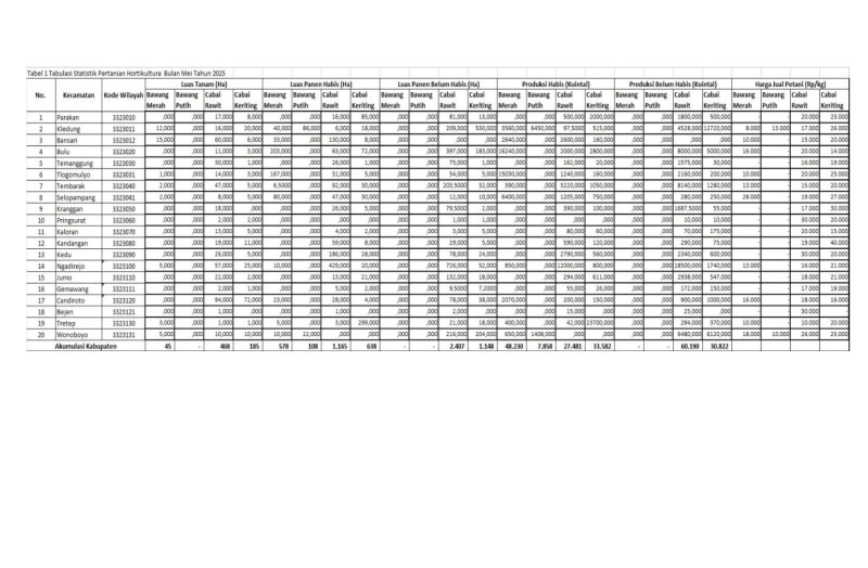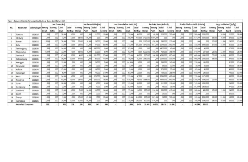 Kategori Statistik Pertanian Kategori: Statistik Pertanian Jumat, 12/12/2025 15:42 7 Tabulasi Data Statistik Hortikultura Bulan Desember 2025 Selengkapnya Kategori: Statistik Pertanian Kamis, 11/12/2025 15:41 9 Tabulasi Data Statistik Hortikultura Bulan November 2025 Selengkapnya Kategori: Statistik Pertanian Selasa, 11/11/2025 15:40 8 Tabulasi Data Statistik Hortikultura Bulan Oktober 2025 Selengkapnya Kategori: Statistik Pertanian Senin, 13/10/2025 15:40 10 Tabulasi Data Statistik Hortikultura Bulan September 2025 Selengkapnya Kategori: Statistik Pertanian Kamis, 11/09/2025 15:33 9 Tabulasi Data Statistik Hortikultura Bulan Agustus 2025 Selengkapnya Kategori: Statistik Pertanian Senin, 11/08/2025 15:32 8 Tabulasi Data Statistik Hortikultura Bulan Juli 2025 Selengkapnya Kategori: Statistik Pertanian Jumat, 11/07/2025 15:32 10 Tabulasi Data Statistik Hortikultura Bulan Juni 2025 Selengkapnya Kategori: Statistik Pertanian Rabu, 11/06/2025 15:30 4 Tabulasi Data Statistik Hortikultura Bulan Mei 2025 Selengkapnya Kategori: Statistik Pertanian Rabu, 14/05/2025 15:30 3 Tabulasi Data Statistik Hortikultura Bulan April 2025 Selengkapnya 123NextLast
